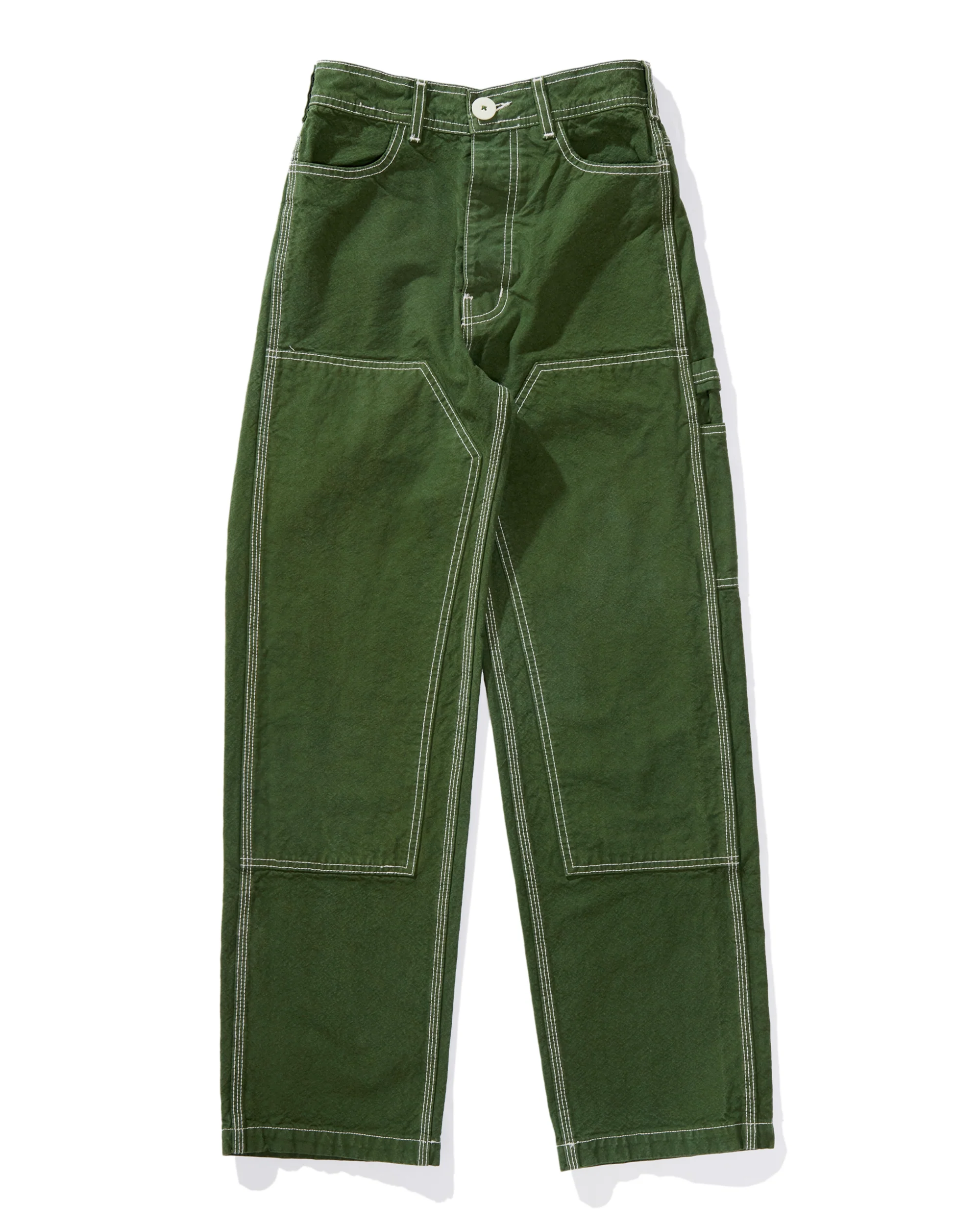 Named after her father, the Patchfront Handy Pant by Jesse Kamm offers a high waist, front pockets, a hammer pocket and loop, straight legs and large patch pockets on the seat, plus double patchfront knees and white contrast stitching. Made in an organic cotton canvas.