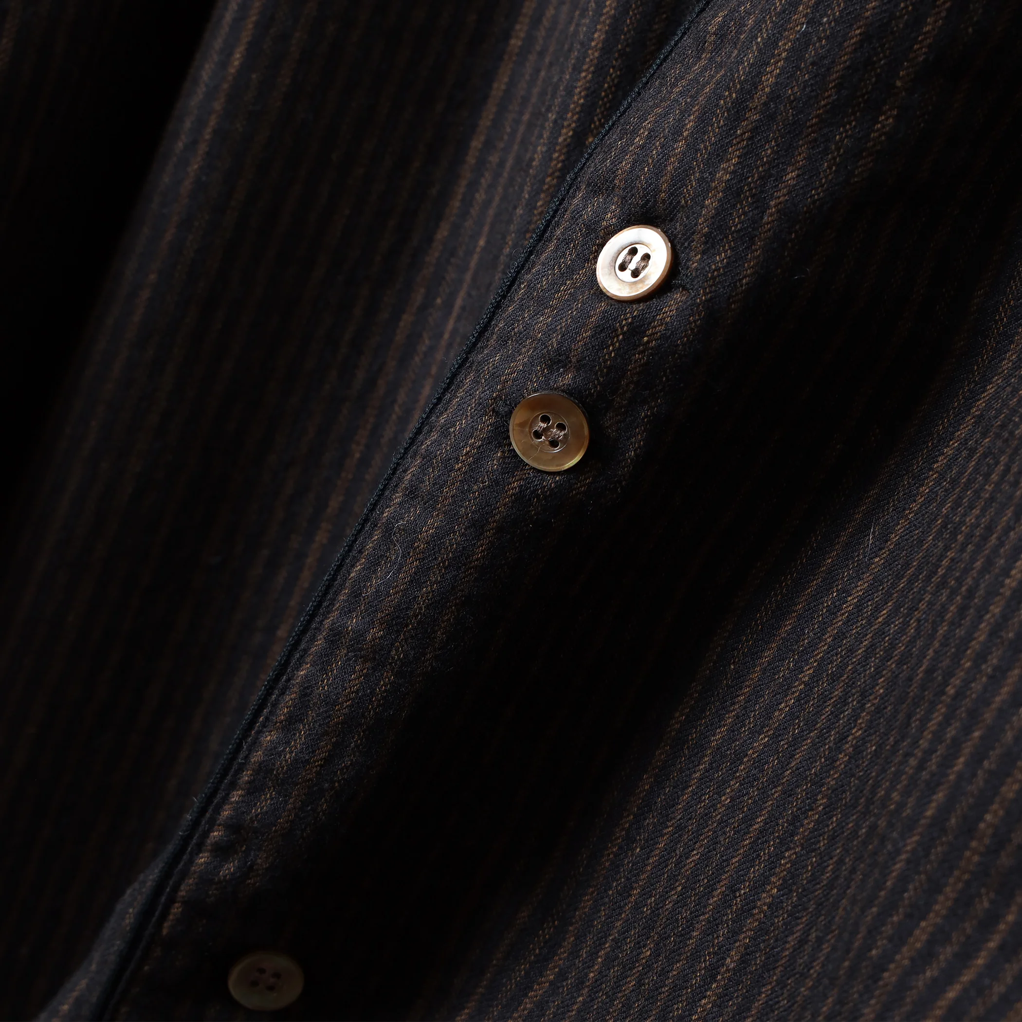 This open-collar shirt features a unique button design, piping detail, and a relaxed fit. Made from a blend of regenerated cellulose fiber and cotton, the fabric offers a smooth texture, subtle sheen, and a lower environmental impact.
