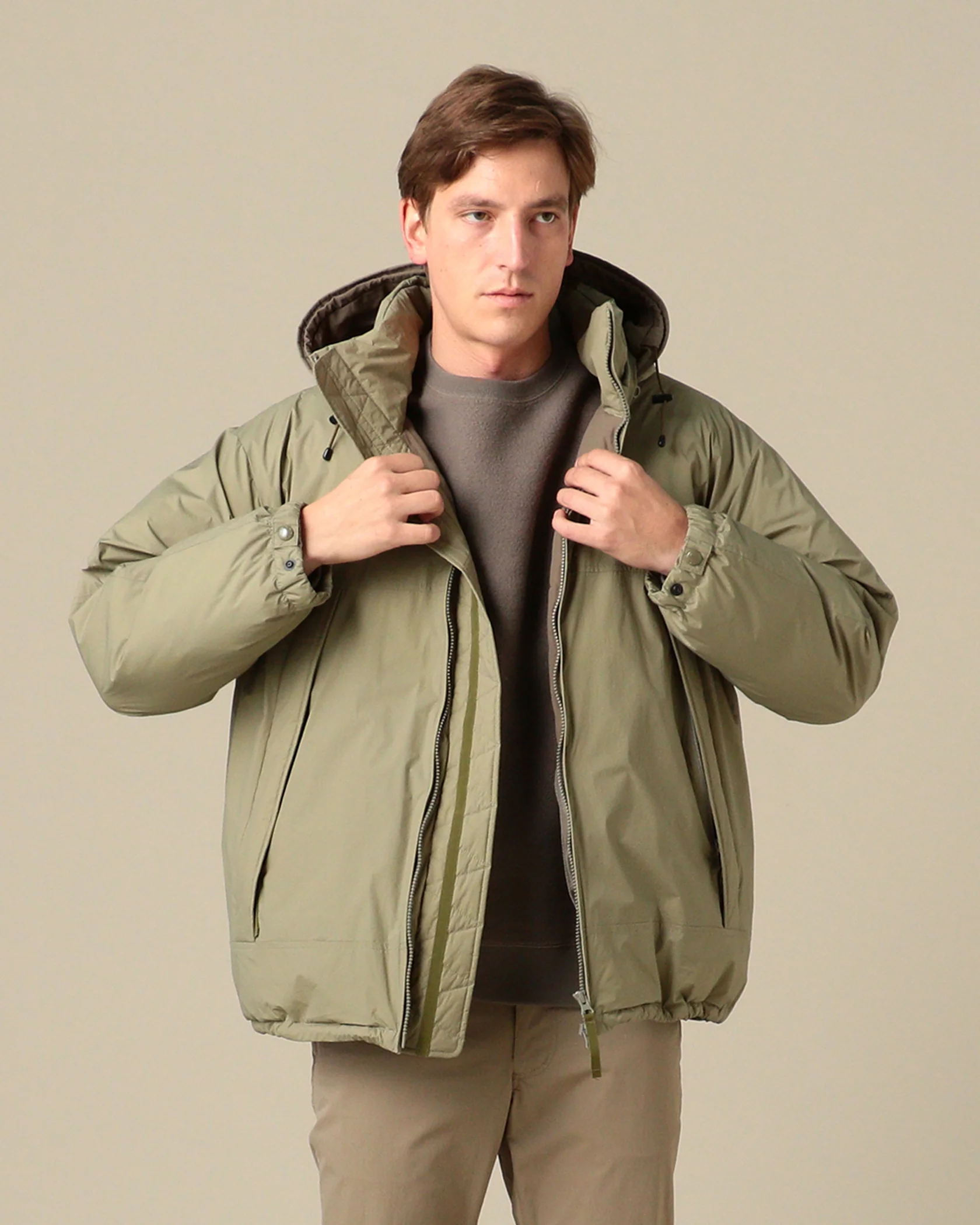 The Reinhold Hooded Down Jacket is our warmest jacket this season, made from a recycled nylon and down filling. Featuring large slit pockets, a down-filled collapsible hood, double zipper front closure, large interior mesh bag pockets, and is adjustable at the hood and waist. The Reinhold Jacket is made from traceable Allied Down with 750 FP, with a PFC-free Hyperdry treatment. See here for more information on our traceable Allied Down.
